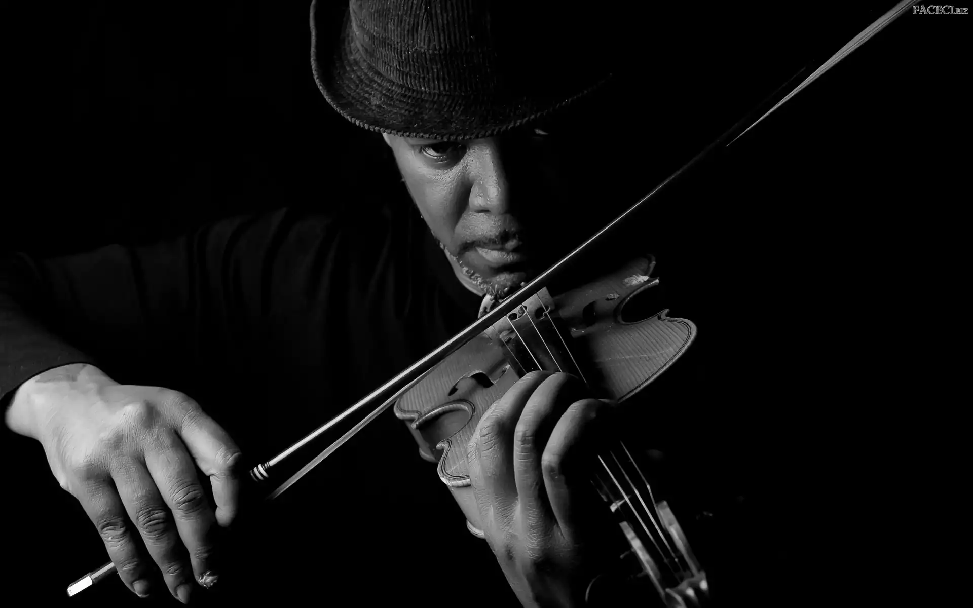 Kapelusz, Czarno-białe, Mężczyzna, Skrzypce - faceci.biz